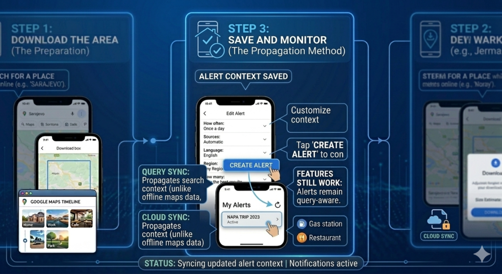 This final step confirms your alert and customizes notification settings to match your preferences. Unlike downloading offline maps data, alerts run invisibly via the cloud and deliver directly to your inbox.