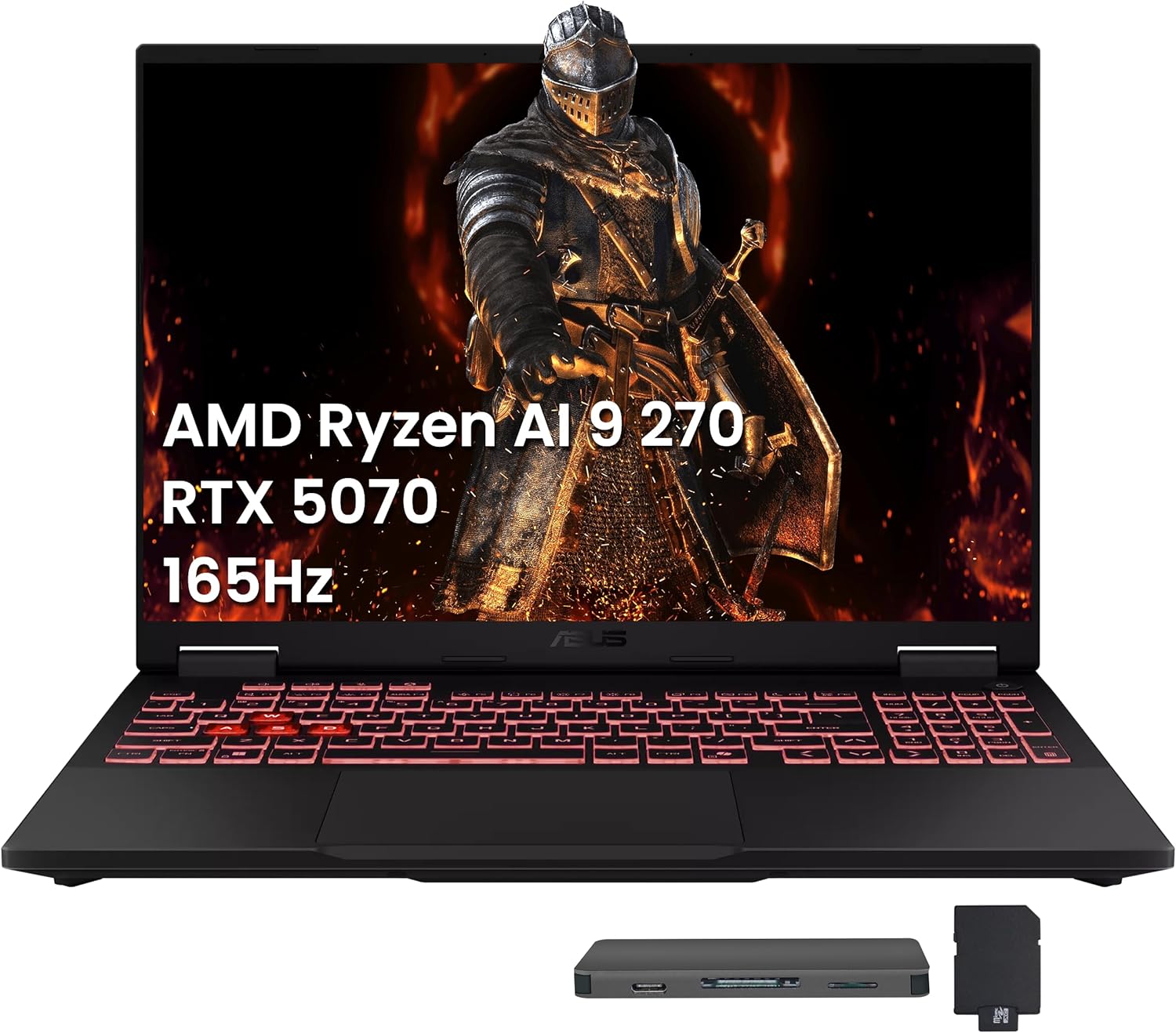 | ASUS TUF A16 | 16″ WUXGA 165Hz | AMD Ryzen 9 270 | RTX 5070 8GB | 64GB | 2TB+1TB dock | Durability plus performance |