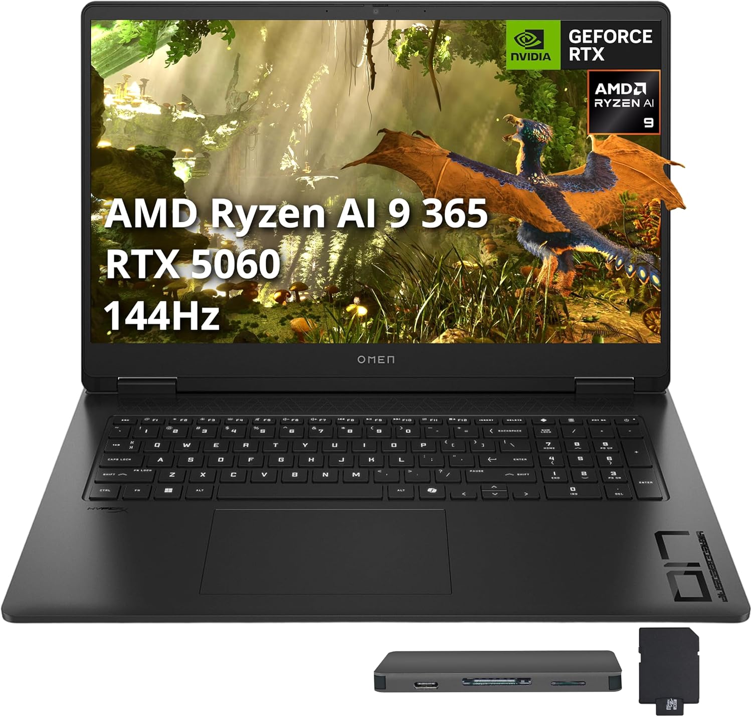 | HP Omen 17 | 17.3″ FHD 144Hz | AMD Ryzen AI 9 365 | RTX 5060 | 32GB | 2TB (1TB+1TB dock) | Balanced mid-range |