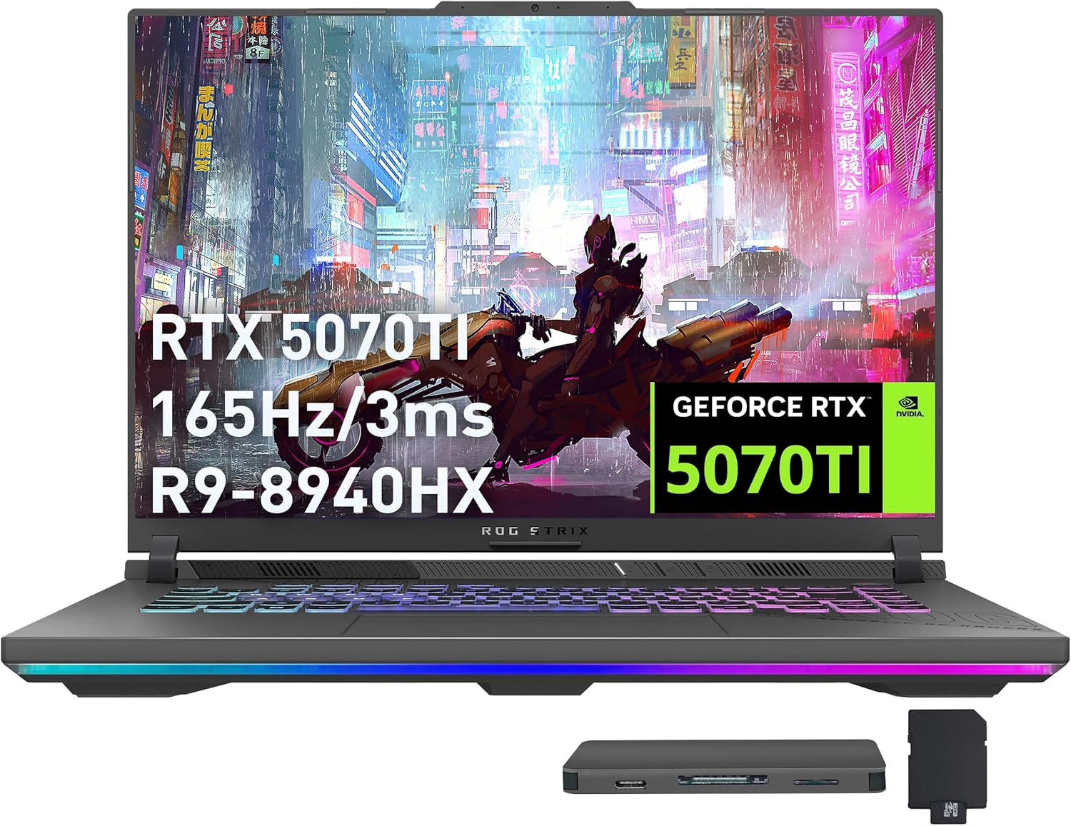 | ASUS ROG Strix G16 | 16″ WUXGA 165Hz | AMD Ryzen 9 8940HX | RTX 5070 | 16GB | 2TB (1TB+1TB dock) | Ryzen-powered performance |